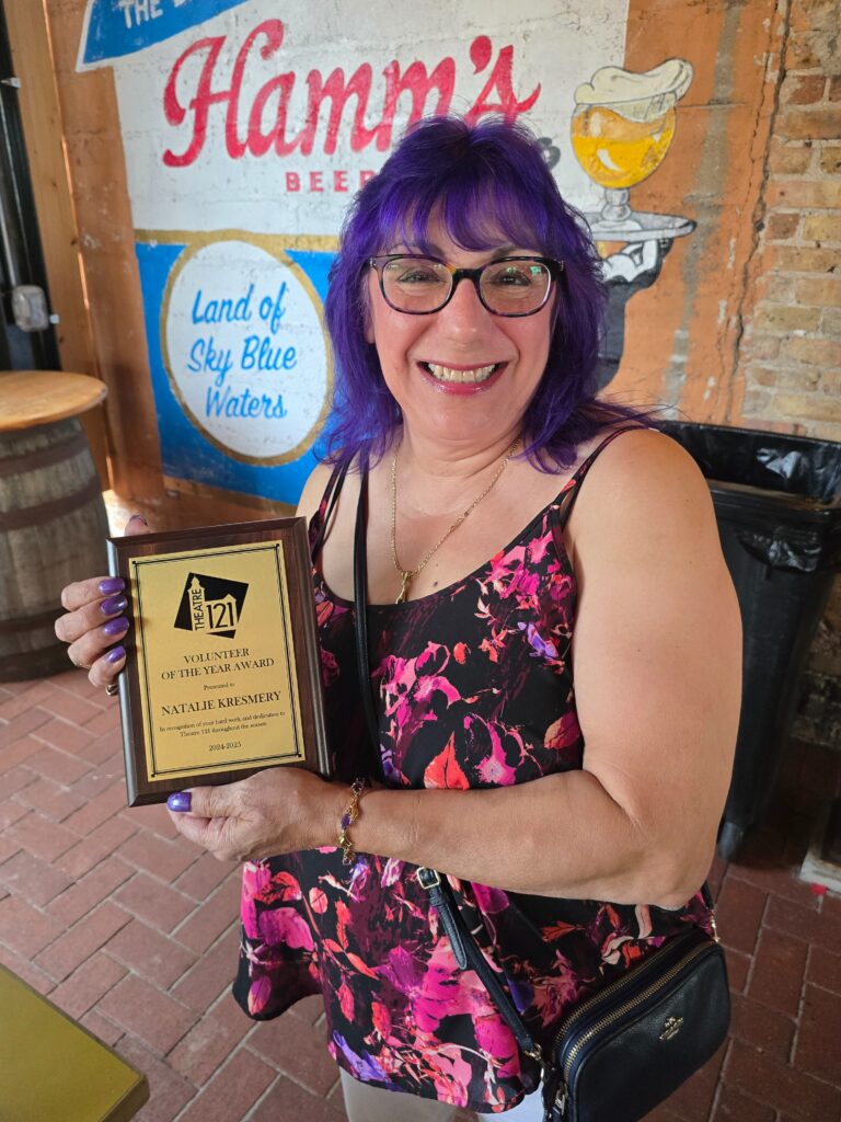 From supporting productions and special events to helping sustain the ongoing operations of the company, volunteers are the foundation of Theatre 121’s success. This award is given to someone whose hard work, commitment, and passion for community theatre have made a meaningful and lasting impact on the organization during the season. It reflects our deep appreciation for those who give their time and talents to help Theatre 121 grow and thrive.